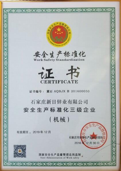 新日鋅業(yè)獲得“安全生產(chǎn)標(biāo)準(zhǔn)化獲得批準(zhǔn)證書